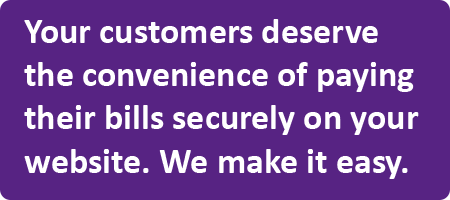 Give your customers the convenience they deserve by permitting them to pay their bills online, anytime, by their method of choice. Your office staff will be relieved from conducting payment processing tasks, errors will be reduced, declined transactions will be eliminated, and your customer's sensitive account information remains securely in their own hands.